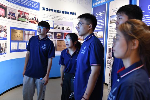 实践队员前往扎赉诺尔博物馆,感受北疆红色文化,深入了解扎赉诺尔的悠久历史和发展历程,切身体会到民族团结对于维护国家安全的重要意义。实践队员参观模拟矿井的建设与运作,直观地感受到矿井内部的作业环境,了解煤矿的开采、运输、通风等基本流程,明确煤炭在中国能源体系中的重要地位,体悟到扎赉诺尔煤炭发展进程的艰辛与卓越。在铸牢中华民族共同体意识教育展厅,实践队员认识到扎赉诺尔作为毗邻俄罗斯和蒙古国的边境旗市区,维护国家安全和边疆安宁,筑牢祖国北疆安全稳定屏障是重大的政治责任。在经济贸易建设展厅,实践队员了解到扎赉诺尔依托文化优势、区位优势、资源优势,加强边疆地区基础建设、推动文旅带动发展、打造国际研学品牌,提高影响力、增强创新力。实践队员纵观扎赉诺尔的民族民俗历史文化脉络,横看扎赉诺尔的巨变和发展,从历史经验中汲取各民族团结奋斗的磅礴力量,决心将“铸牢中华民族共同体意识是新时代党的民族工作的主线”意识贯穿到今后的学习、生活中。