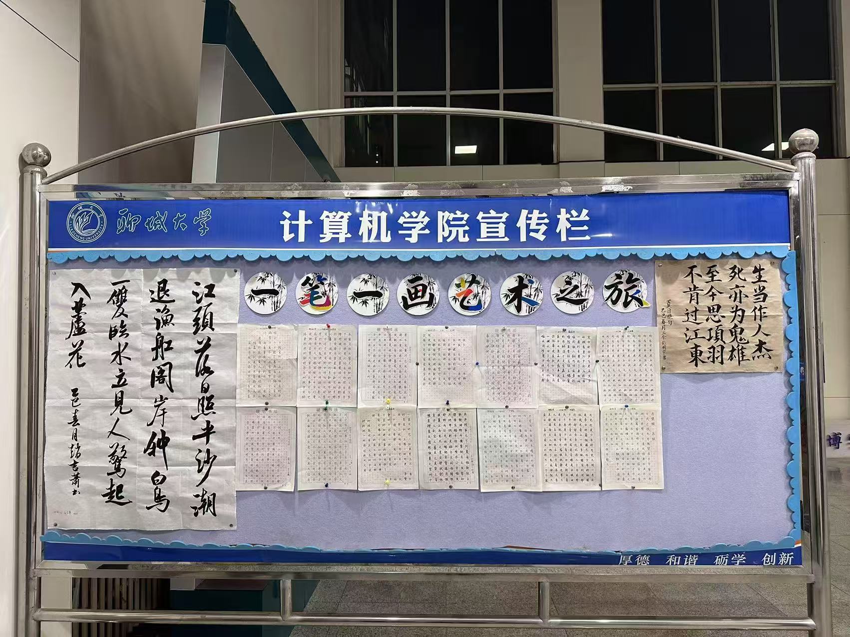 为深入挖掘书法艺术的历史底蕴与时代价值,推动中华优秀传统文化在校园场景中的创造性转化与创新性发展,丰富校园文化生态,全面提升青年学子的文化素养与审美境界,3月28日至3月31日,聊城大学计算机学院主办、学院学生会秘书处承办的 “墨韵流光:一笔一画书法艺术之旅” 主题活动在西校区10号楼A424顺利举行。