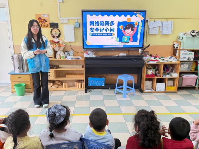 活动中,志愿者们紧扣幼儿认知特点,以趣味PPT课件为载体,用童趣化的语言带领孩子们了解网络安全的基本常识、数字文明的核心意义,为孩子们讲解数字时代的生活变化,科普正确使用电子产品、规范数字行为的相关知识。通过一个个贴近生活的科普小故事,志愿者将网络安全小常识融入趣味场景,让孩子们在聆听中树立科学、健康、安全的数字使用观念,同时深刻认识网络安全防护的重要意义。在互动问答环节,志愿者围绕网络安全小常识设计了趣味问题,孩子们踊跃举手、积极分享。针对孩子们的回答,志愿者耐心引导、细致纠正,讲解科学规范的网络安全防护方法,在轻松互动中筑牢孩子们的网络安全意识,有效提升孩子们的数字认知与行为规范。