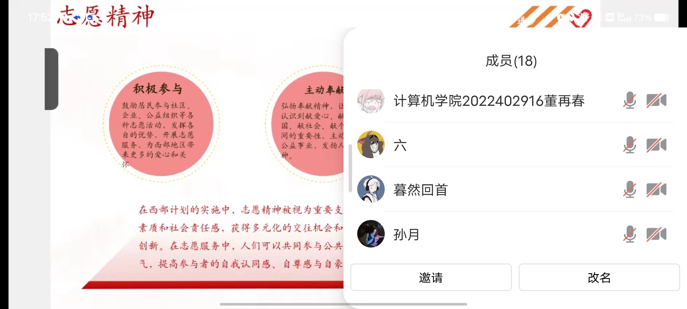 青春不以山海为远,志愿只向家国未来。通过线上宣讲的方式,李佳雯围绕志愿服务精神、优秀志愿者风采以及最新政策解读等方面对西部计划进行介绍,使同学们有了更深入的了解。她指出,西部计划带给大家的不仅仅是一份履历上的证明,更多的是深入西部基层生活后的成长和经历,希望大家珍惜此次机会,为祖国发展贡献自己的力量。李佳雯对聊城大学西部计划的工作纪实进行了一个简要的概括,列举三位志愿者的故事,鼓励同学们怀抱满腔热血、坚定心中理想,向扎根在西部的志愿者们学习,将自己所学的知识奉献给祖国的西部沃土,尽己所能,不计报酬,帮助他人,服务社会,践行志愿者精神,传播先进文化,为社会主义建设献策献力。
