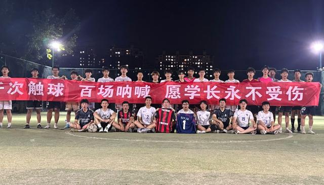 活动伊始,足球队的全体队员准时赴约,齐聚在奥森运动场的绿茵之上。比赛前的准备阶段,学弟们纷纷走上前来,与学长们亲切握手,他们以诚挚的心意,为即将离校的学长们送上深情的毕业祝福。这一刻,球场内弥漫着浓厚的情感氛围,温馨与感动交织,让人难以忘怀。随后,活动进入精彩的友谊赛环节,旨在让毕业生们重温足球带来的快乐,为他们在大学期间最后一次穿上队服、踏上绿茵场留下难忘的回忆。细腻的脚法、默契的配合、缜密的队形部署使比赛迅速进入白热化。球员们展现出超凡的实力,你来我往,激情澎湃。在这场比赛中,队员们关注的焦点已不再是胜负的较量,而是享受与朋友并肩作战的快乐。比赛的氛围也从原本的严肃激烈转变为轻松欢快,充满了友谊与欢笑。活动接近尾声时,球队高高拉起了一条横幅,上面赫然写着“愿学长永不受伤”,这句温馨的话语如同春风拂面,寄托了对学长们最真挚的祝福。愿他们在未来的人生道路上,能够如同在绿茵场上一样,勇往直前,不畏艰难,将每一步都踏得坚实有力,迈向成功的彼岸。同时,也期待着在未来的某个日子里,这些队员能够再次相聚在这片充满激情与回忆的绿茵场上,共同开启一场难忘的“重聚赛”,重温那些美好的时光。