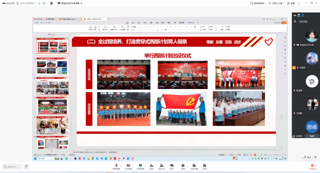为深入贯彻落实习近平总书记给西部计划志愿者重要回信精神,引导青年学子将专业技术能力融入国家战略需求,3月17日,人工智能与计算机学院面向计算机网络工程专业学生开展大学生志愿服务西部计划线上宣讲活动。